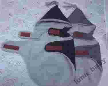 Jest to kurteczka ortalionowa uszyta na polarze z kapturkiem w kolorze