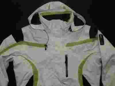 Wady: minimalne rozdarcie materiału po lewej stronie (widoczne na zdjęciach), rzepy na mankietach słabo trzymają, widoczne ślady używania na sznurku ściągającym kaptur, sprane informacje producenta.