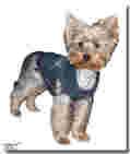 Kurtka dla psa uszyta z miękkiego jeansu.Pod spodem nie jest ocieplana .Zapinana na rzepy pod brzuchem.Materiał:100% Jeans.Kurtka jest miękka ,lekka i praktyczna. Kurtka ma kolor ciemnego niebieskiego jeansu.Po bokach regulowany obwod na zatrzaski