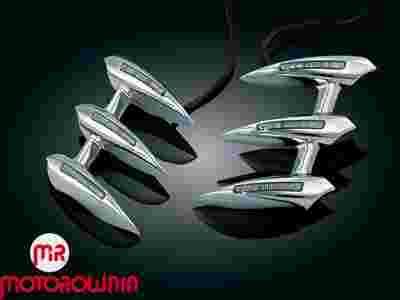 DODATKI MONTOWANE NA PRZEDNIM ZAWIESZENIU PO OBU STRONACH BŁOTNIKA MOGĄ ŚWIECIĆ I BYĆ UŻYWANE RÓWNIEŻ JAKO KIERUNKOWSKAZY NA LAMPKACH LED!