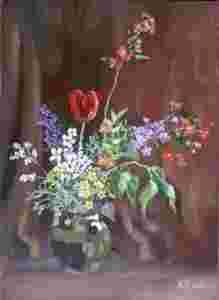 Kwiaty na brązowym tle, obraz akrylowy 40x55