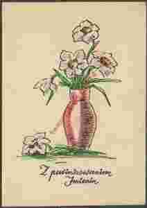 Kwiaty w wazonie ręcznie malowana b/o