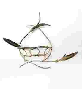 Kwietnik scienny na jeden kwiatek wykonany jest z metalu w kolorze złotej patyny.