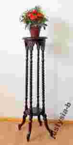 Przedmiotem aukcji jest wyjątkowy kwietnik, wykonany w całości z litego drzewa mahoniowego w kolorze ciemnobrązowym (ciemny kasztan delikatnie przechodzący w mahoń). Kwietnik ozdobiony jest wspaniałymi rzeźbieniami, posiada także półkę na dodatkową donicę z kwiatem. Będzie on nie tylko funkcjonalnym elementem Państwa wnętrza ale także z pewnością ozdobi każde pomieszczenie. Jest bardzo solidnie i precyzyjnie wykonany. Kwietnik jest nowy.