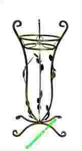 Przedmiotem aukcji jest kuty kwietnik na czterech nogach, przeznaczony na jedną doniczkę.