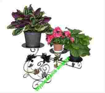Przedmiotem aukcji jest kuty kwietnik na trzy doniczki.