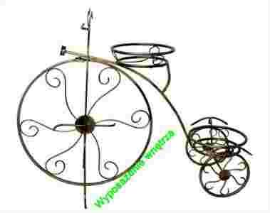 Przedmiotem aukcji jest kuty kwietnik w kształcie rowerka przeznaczony na dwie donice.
