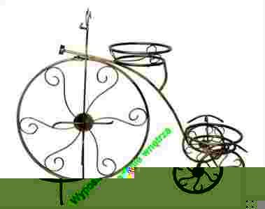 Przedmiotem aukcji jest kuty kwietnik w kształcie rowerka przeznaczony na dwie donice.