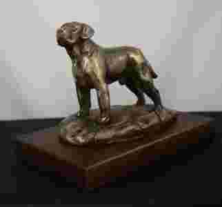 Labrador Retriever statuetka z brązu na drewnie