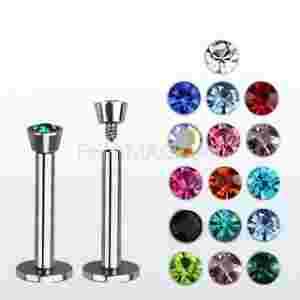 Labret ze stali z kryształkiem - kolor amethyst