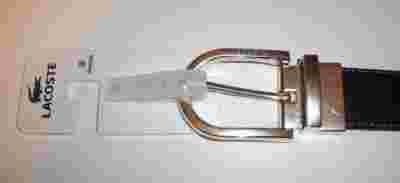 Bardzo elegancki, firmowy, dwustronny, brązowo-czarny (aby zmienić stronę wystarczy przekręcić klamrę) pasek Lacoste. Rozmiar 38, obwód w pasie przy zapięciu na środkową dziurkę 93 cm.