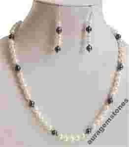 Ladny Naturalny Biały i Czarny Perły Naszyjnik z Koralików*Kolczyki gratis