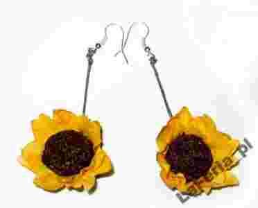 DŁUGOŚĆ KOLCZYKÓW TO OK 7 cm. ŚREDNICA SŁONECZNIKA TO OK 3,5 CM . KOLCZYKI ZAWIESZONE SA NA POSREBRZANYCH BIGLACH.