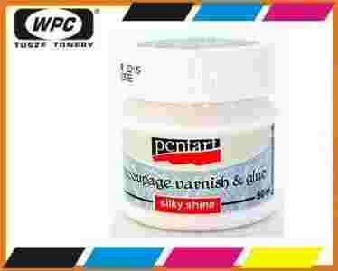 Klej i lakier do decoupage.Tworzy powierzchnię wodoodporną. Preparat służący do przyklejania motywów oraz zabezpieczania pracy. Motyw po przyklejeniu lakierujemy, ilość warstw lakieru jest dowolna. Każda warstwa przed ponownym lakierowaniem powinna być sucha. Wskazane delikatne przeszlifowanie wyschniętej warstwy przed nałożeniem kolejnej.