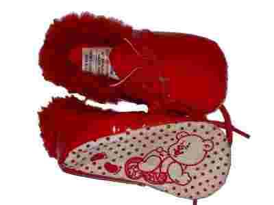 LAKIERKI czerwone buciki butki z futerkiem 10,5 cm