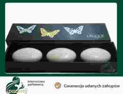 Zestaw zawiera: Lalique Fleur de Cristal mydełko 25g, Lalique Encre Noir Pour Elle mydełko 25g, Lalique Amethyst mydełko 25g
