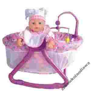 W skład zestawu wchodzi: - Lalka Agatka, - łóżeczko - kołyska, - karuzelka na łóżeczko, poduszeczka, kocyk, - śliniaczek, - buteleczka, kubeczek, miseczka i sztućce, - nocniczek i szampon. Ta wspaniała laleczka uprzyjemni zabawę twojemu dziecku. A dzięki kołysce zabawa będzie ona jeszcze bardziej przyjemniejsza i urozmaicona.