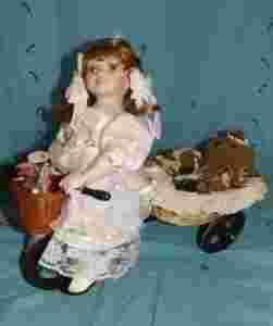 LALKA PORCELANOWA NA ROWERZE Z MISIEM WYS 41CM
