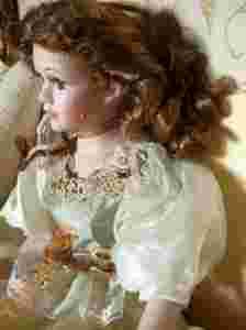 LALKA PORCELANOWA W PIĘKNEJ Z EPOKI SUKNI.