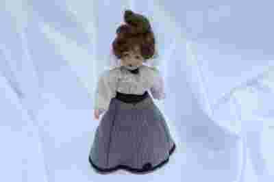 Przedmiotem licytacji jest lalka porcelanowa w przepięknym stroju.