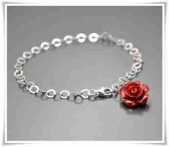 LaMar_ 925 Srebrna Bransoletka z Czerwoną różą