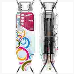 DESKA DO PRASOWANIA 120X38CM PRESENT Wysokiej jakości deska do prasowania wyposażona w blokadę transportową, powierzchnię rozpraszającą podczas prasowania parowego, gniazdo zasilania elektrycznego i antenkę na kabel zasilający. Deska do prasowania ma stabilną i bezpieczną konstrukcję wyposażoną w antypoślizgowe nakładki na nogi. Pokrowiec deski wykonano z bawełny. Deska do prasowania posiada regulację wysokości, podstawkę na żelazko z silikonowymi elementami zapobiegającymi uszkodzeniu powierzchni żelazka.