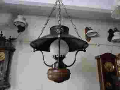 Lampa stylizowana na naftową z mosiężnym kloszem. Rama wykonana z wysokiej jakości mosiądzu.