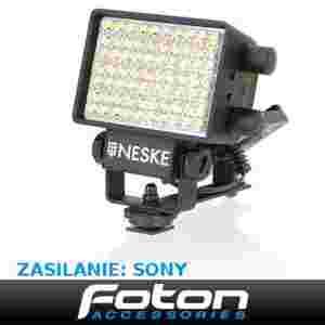 Wyjątkowa lampka diodowa NESKE MULTICOLOR II, zasilana za pomocą akumulatorów Sony NP-F, NP-FM, NP-QM lub ich zamienników.