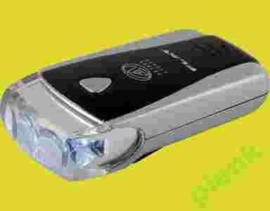 Lampa przednia z 3 białymi diodami Hi-Intense. Tryb świecenia ciągły i pulsujący. Gumowy uchwyt umożliwia montaż lampy na wszystkich rodzajach kierownic. Czas świecenia: światło pulsujące - 160 godz., światło ciągłe - 80 godz. Zasilanie: 3 baterie LR-03 (AAA) znajdujące się w zestawie.