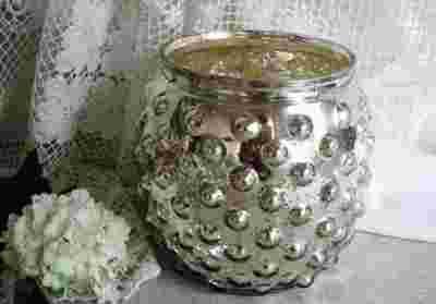 UROCZY LAMPION. WYKONANY ZE SZKŁA W KOLORZE STAREGO SREBRA. PO ZAPALENIU ŚWIECZKI JEST NIEZWYKLE KLIMATYCZNY.