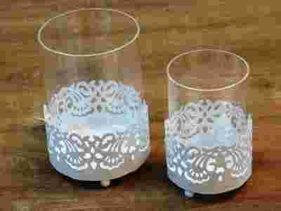 LAMPION METALOWO-SZKLANY BIAŁY