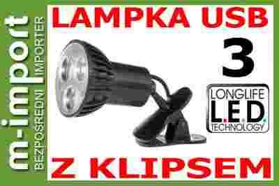 LAMPKA USB LAPTOP / PC 3 LED Z KLIPSEM -DOM/AUTO