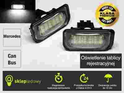 Lampki LED Mercedes - oferowany produkt to zestaw dwóch lampek stosowanych jako zamiennik dla standardowego oświetlenia tablicy rejestracyjnej w samochodach Mercedes.