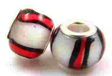 Kolory występujące w koraliku: srebrny, czarny, czerwony, biały
