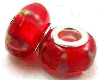 Koralik modułowy Lampwork "czerwień paskowana"