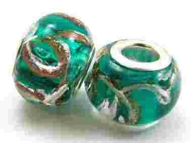 Kolory występujące w koraliku: srebrny, zielony
