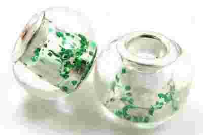 Koralik modułowy Lampwork "Zielony brokat"