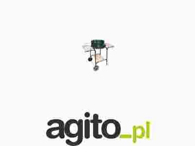 wykonanie z kombinacji emaliowanej i lakierowanej blachy stalowej; emaliowana miska paleniskowa; chromowany ruszt grillowy i ruszt do podgrzewania; pobocznica z regulacją wysokości rusztu; wykonane z drewna półki boczne (x2) i półka dolna (x1); podstawa jezdna; dołączony rożen obrotowy; powierzchnia grillowania fi. 42 cm - odpowiedni dla około 6 osób