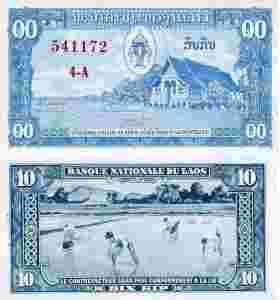 Laos 10 Kip P-3 1957 Stan XF+