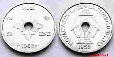 LAOS 20 CENTS 1952 SŁOŃ SŁONIE MENNICZA