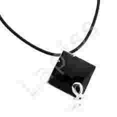 Naszyjnik ze srebra rodowanego, próba 925 i kauczuku. Kamień: onyks. Długość: 45 cm. Wymiar kamienia: 2,4 cm x 2,4 cm. Piękny naszyjnik, niesamowicie prezentuje się na dekolcie.