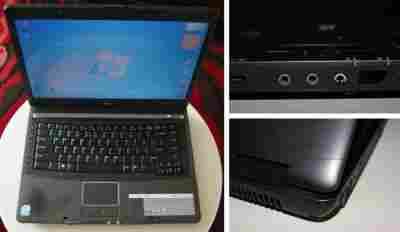 Oferuję na tej aukcji laptop w/w marki. Jestem jego pierwszym i jedynym właścicielem. Komputer jest używany i 100% sprawny w stanie ogólnym dobrym - poza dwoma wadami: nadkruszonym plastikiem oznaczającym gniazdo na słuchawki (samo gniazdo działa bez problemu) i skazą przy zawiasie z lewej strony (patrz foto). Poza w/w nigdy nie było z nim jakichkolwiek kłopotów, zawiech, bluescreenów itp. Komputer ma wymienione fabryczne 512MB RAM-u na 2GB (Kingston). W komplecie oczywiście instrukcja i zasilacz (od nowości ten sam i niezawodny). Specyfikacja* i wygląd sprzedawanego laptopa przedstawiają opis i zdjęcia poniżej. Spokojnie nadaje się jako komputer "wycieruch" np. dla studenta albo dziecka.