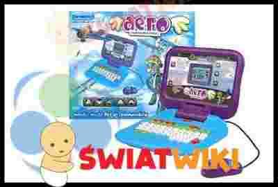 Laptop zawiera 8 ćwiczeń językowych, 8 zadań matematycznych, 4 quizy z wiedzy ogólnej,