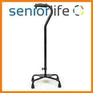 Regulowana laska inwalidzka z czterema punktami podparcia. Laska regulowana na wysokość, dostępna w czarnym kolorze. Podstawa o rozmiarza 18x27 cm. Laska dostępna także z mniejszą podstawą 15x20 cm /numer produktu 126/.