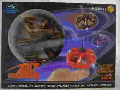 Latający pojazd do zabawy w pomieszczeniach zamkniętych przypominający UFO. Statek lata sam, uruchamia się go przesuwając dłoń pod pojazdem, nie używa się pilota, posiada wbudowany czujnik odległości i można sterować ręką. Świecące i migające podczas lotu diody zapewniają niezapomniany efekt wizualny!