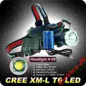 Oferowana latarka czołowa H-08, CREE LED XM-L T6