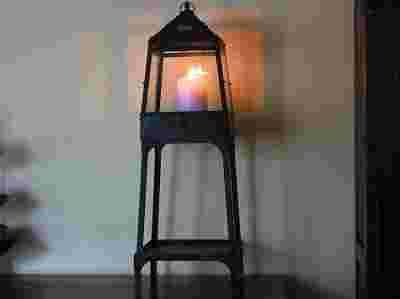 Przedmiot w całości wykonany z metalu i szkła. Latarnia utrzymana w eleganckiej czarnej lub białej delikatnie przecieranej kolorystyce. Składa się ona z trzech niezależnych od siebie części. Dwie pierwsze z nich, to elegancki, prosty w formie, solidny metalowy stojak w skład którego wchodzi podstawa z półką oraz zakładany na nią stelaż. Druga, to elegancki lampion o oryginalnym kształcie wykonany z metalu i szkła. Lampion otwierany poniżej szklanego okna, posiada uchwyt umożliwiający jego przenoszenie lub zawieszenie. Szyby są osobną częścią konstrukcji lampionu - w przypadku rozbicia łatwe do wymiany. Lampion przystosowany do postawienia na stelażu. Jest on jednak niezależnym elementem stojaka i stelażu i może być wykorzystywany na różne sposoby : może pełnić funkcję lampionu, latarni...ale równie dobrze może być mini szklarenką dla żywych roślin.