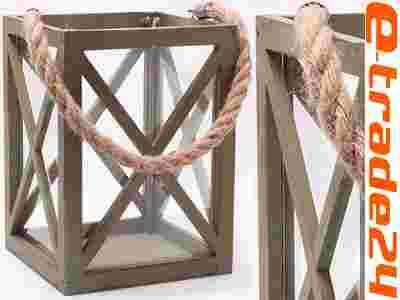 - Przedmiotem sprzedaży jest drewniano-szklany lampion, do postawienia lub powieszenia.