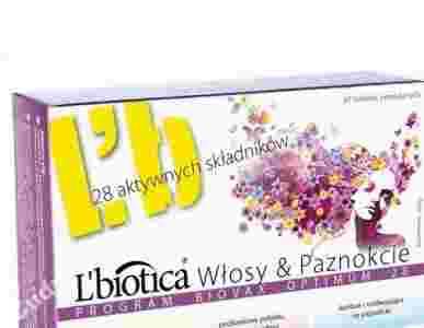 To kompozycja 28 aktywnych składników ukierunkowanych na wzmocnienie kondycji włosów i paznokci. Ponieważ często trudno jest określić, jakiego składnika potrzebują nasze włosy, tabletki powlekane L'biotica Włosy & Paznokcie zawierają związki uzupełniające niedobory substancji odżywczych oraz wpływają korzystnie na stan włosów i paznokci. Najważniejsze składniki to biotyna (witamina H), kwas foliowy, witamina A, witaminy z grupy B: B1,B2,B5,B6,B12, witamina C, witamina D3, witamina E, jod, cynk, żelazo, miedź, mangan, selen, molibden, krzem - wyciąg ze skrzypu polnego, wyciąg z pokrzywy, algi morskie, ekstrakt z liści zielonej herbaty, metionina i cystyna. Systematyczne przyjmowanie preparatu L'biotica Włosy & Paznokcie - Program Biovax Optimum 28 pomaga we wzmocnieniu włosów i utrzymaniu ich zdrowego wyglądu.