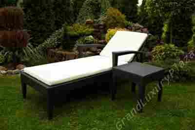 Przedmiotem aukcji jest nowyleżak na taras wykonany z technorattanuSUNSET (z regulowaną wysokością oparcia)+ stolik wkolorze 3049o wymiarach: